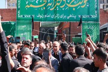 دکتر مسعود پزشکیان از موکب حضرت نجمه خاتون مشهدالرضا که در محل مجتمع دانشجویی امام رضا (ع) پذیرای زنان و دختران زائر بود، بازدید کرد.