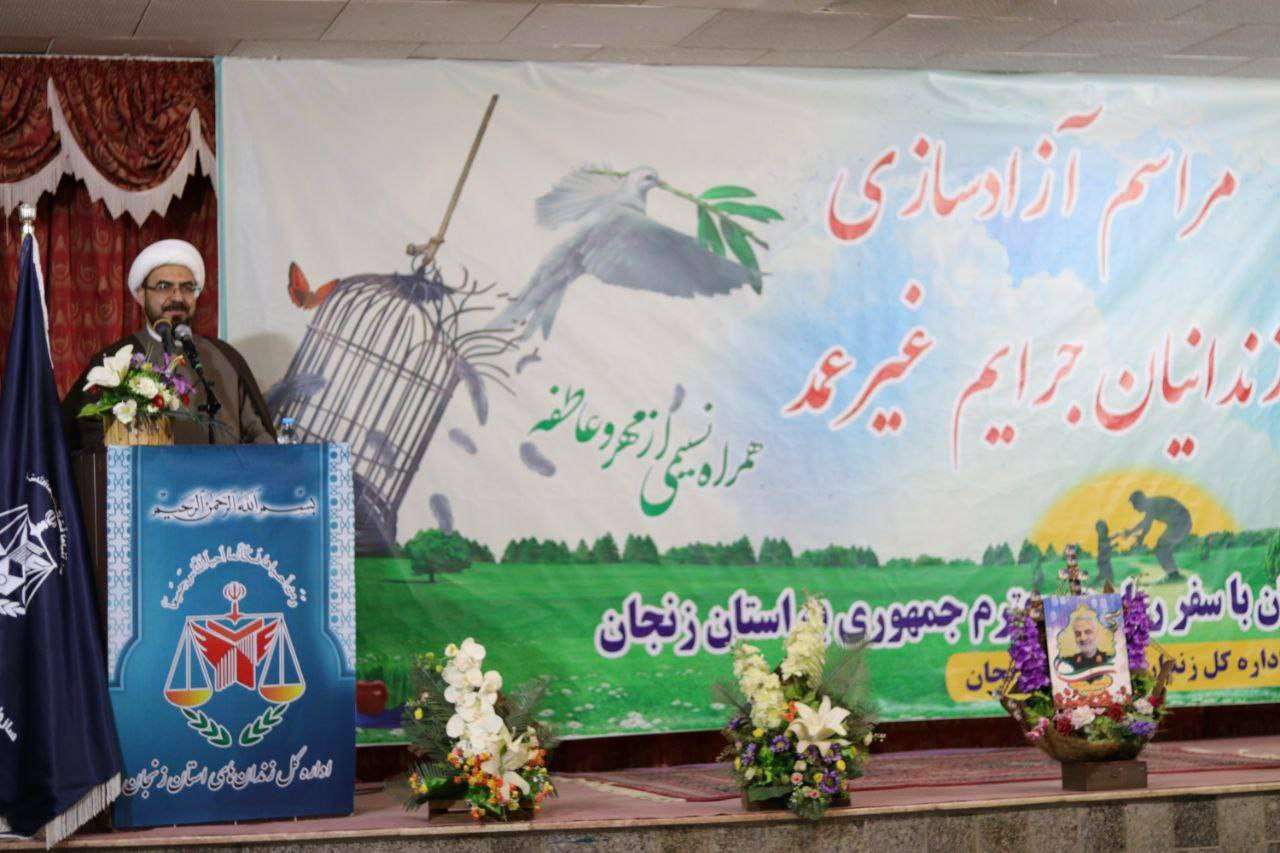 به گزارش ایرنا، همزمان با سفر پرخیر و برکت آیت الله سید ابراهیم رئیسی، رئیس جمهور اسلامی ایران به استان زنجان، ویژه برنامه آزادی زندانیان جرائم غیر عمد با حضور محسن منصوری معاون اجرایی رئیس جمهور، حجتالاسلام والمسلمین احمد صالحی رئیس مرکز ارتباطات مردمی ریاست جمهوری، رئیس دادگستری استان، مدیر کل زندانها و دادستان مرکز استان در سالن آمفی تئاتر زندان مرکزی زنجان برگزار و ۱۵۳ زندانی جرایم غیر عمد در این روز آزاد و به آغوش خانواده خود بازگشتند.