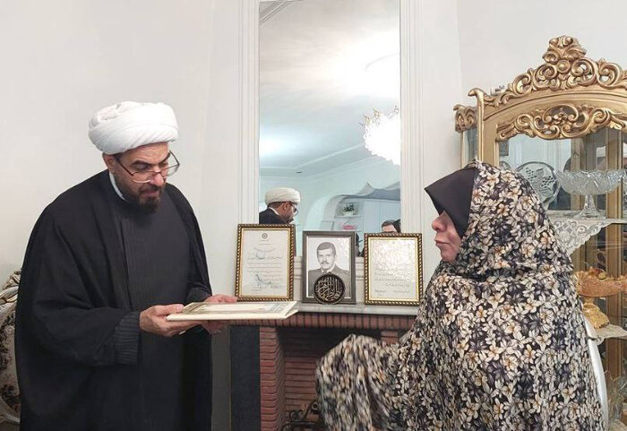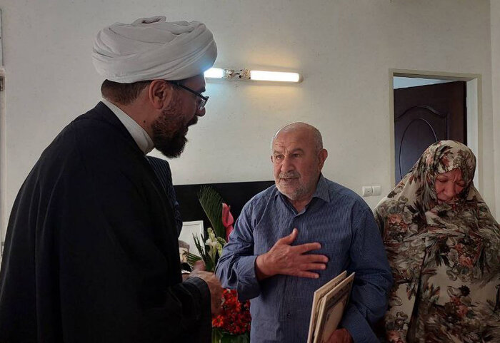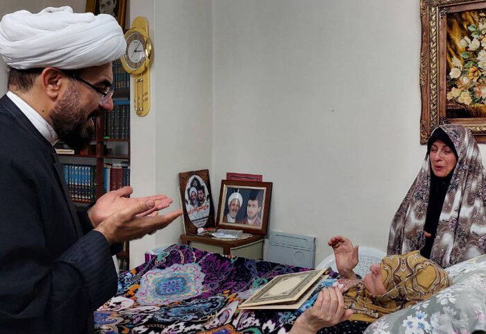 حضور حجت‌الاسلام صالحی در منزل خانواده شهدا برای تکریم همسایگان رئیس‌جمهور در آستانه عید سعید فطر