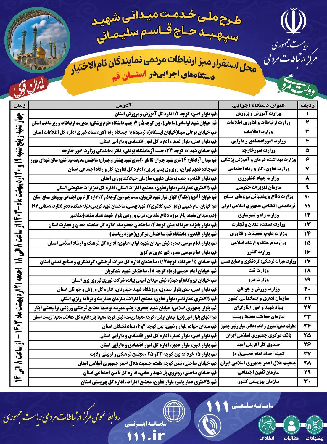خدمترسانی بیوقفه مرکز ارتباطات مردمی به مردم شریف قم با برپایی 30 میز ارتباطات مردمی نمایندگان تامالاختیار وزارتخانهها