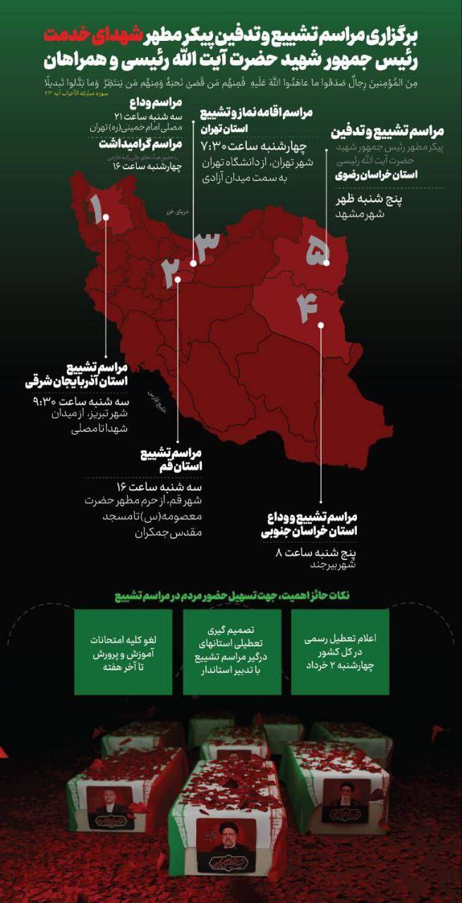 جزئیات مراسم تشییع و تدفین پیکر مطهر شهدای خدمت، رئیسجمهور شهید حضرت آیتالله رئیسی و همراهان تاریخ خبر: // کد خبر : 29701 گروه خبری : اخبار مرکز,اخبار استان ها