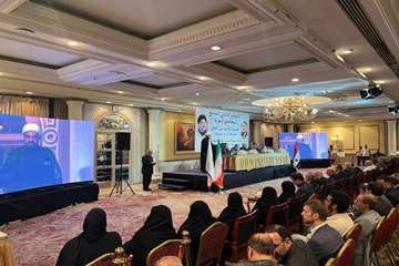 متن عربی سخنرانی رئیس مرکز ارتباطات مردمی ریاست جمهوری در افتتاحیه نهمین اجلاسیه بینالمللی مجاهدان در غربت
