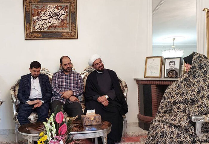 حضور حجت‌الاسلام صالحی در منزل خانواده شهدا برای تکریم همسایگان رئیس‌جمهور در آستانه عید سعید فطر